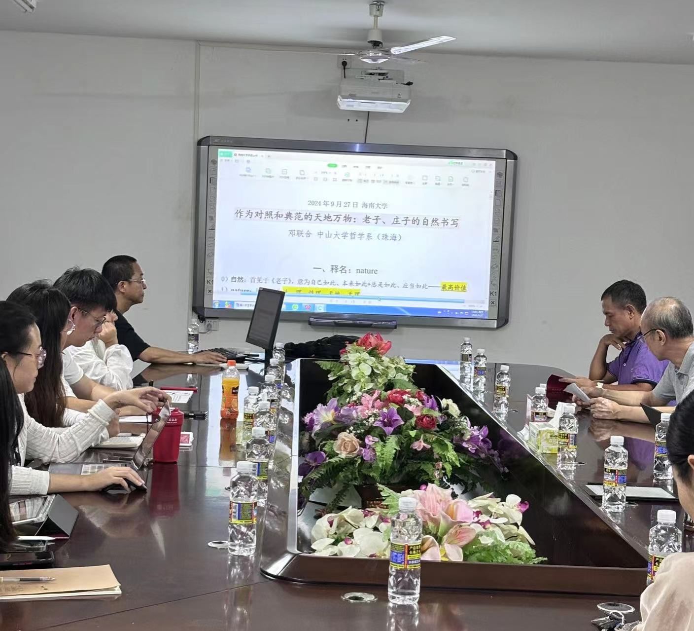 2024年9月27日晚19:00,德赢AC米兰中国官方网站邀请中山大学哲学系(珠海)邓联合教授在社科楼A311会议室为学院师生作“作为对照和典范的天地万物——老子、庄子的自然书写”专题讲座。讲座由德赢AC米兰中国官方网站黄启祥教授主持,学院部分教师、本硕博学生参加了本次讲座。