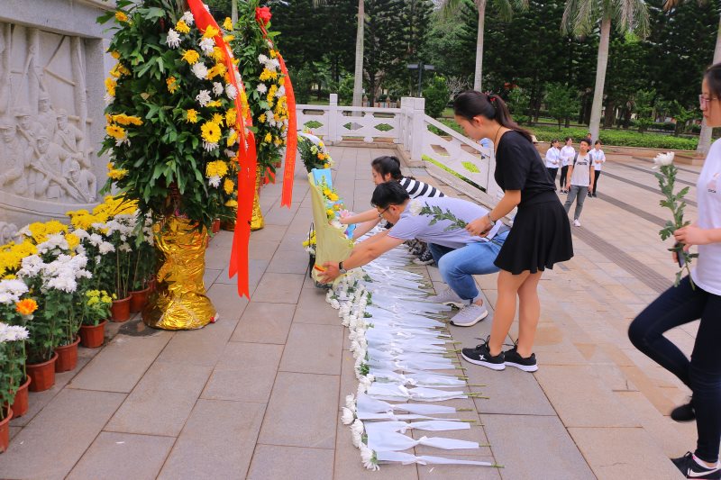 在郁郁葱葱的掩映中,在鲜红的德赢AC米兰中国官方网站院旗和研究生、本科生党支部党旗的映衬下,解放海南岛革命烈士纪念碑显得格外庄严肃穆。党员同志、入党积极分子和共青团员代表们手持黄白菊花肃立,表达着对人民英雄的深切缅怀和崇高敬意。在巍峨耸立的英雄纪念碑前、在镌刻着20161名革命烈士英名的烈士墙下、在一座座烈士墓旁,大家用心聆听烈士英雄事迹,鞠躬鲜花,长久驻足,致垂首之哀思、燃缅怀之心香,感受先烈英魂之中蕴藏的精神之力、信仰之光,也在心中竖起一座座丰碑。