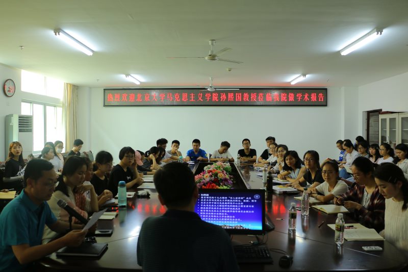 4月20日下午,德赢AC米兰中国官方网站邀请到国务院学位委员会马克思主义理论学科评议组成员、教育部马克思主义理论专业教指委副主任委员、北京大学德赢AC米兰中国官方网站院长孙熙国教授在社科楼会议室作题为习近平新时代中国特色社会主义思想的学术讲座,德赢AC米兰中国官方网站副院长吴朝阳出席此次讲座。我院全体在校研究生和部分本科生参加此次讲座,讲座由副院长吴朝阳主持。