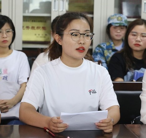 研究生老生代表张萌、本科生老生代表管笑笑、研究生新生代表刘俊男、本科生新生代表许缘圆分别在会上发言。