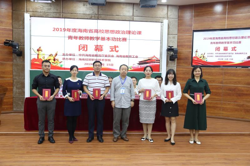 2019年度海南省高校思想政治理论课青年教师教学基本功比赛在海南经贸职业技术学院举办,本科组高校共有26名教师参赛,设置一等奖1名,二等奖2名,三等奖3名。