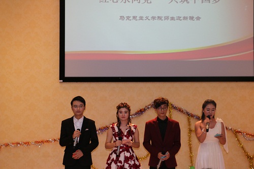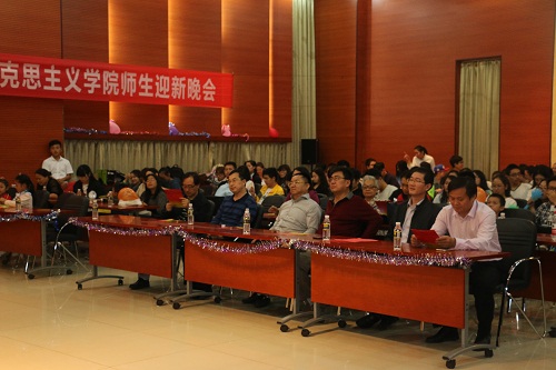 12月26日晚,德赢AC米兰中国官方网站在思源学堂多功能厅举行以“红心永向党,共筑中国梦”为主题的迎新联欢晚会,学院党委书记段捷频、院长李德芳、副院长李辽宁出席,全体师生共同参加晚会。