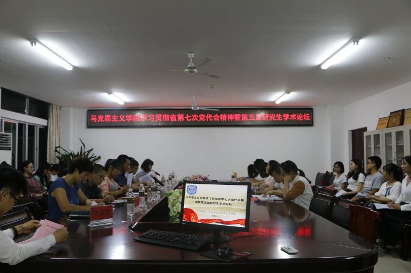 5月1日晚,我院在社科楼A311举办省第七次党代会精神专题学习会暨第五届研究生学术论坛。院党委书记段捷频、副院长杨娜,部分教师代表和全体研究生参加活动。