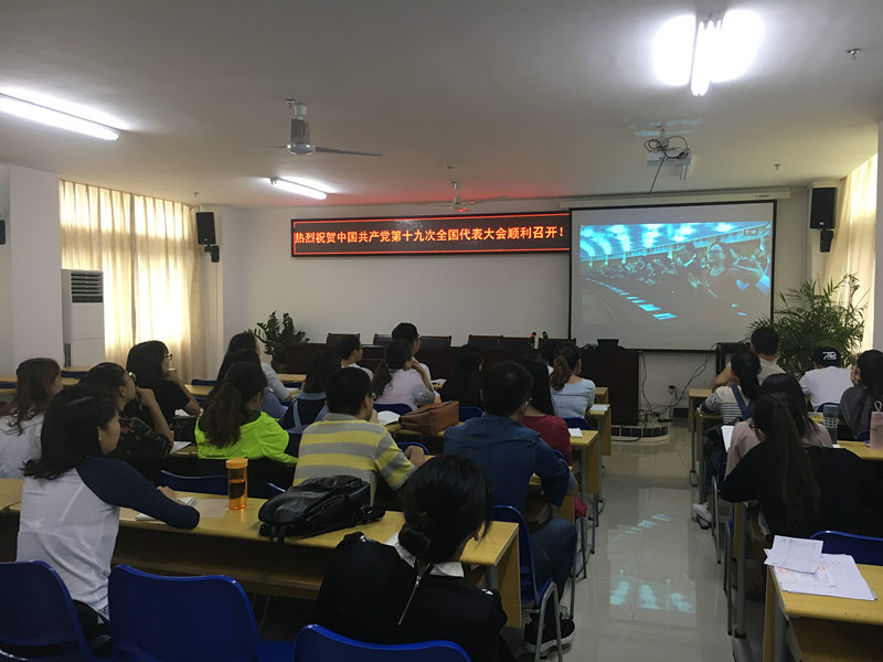 10月18日上午,德赢AC米兰中国官方网站党委认真组织师生观看中国共产党第十九次全国代表大会开幕会直播。院领导李辽宁、张井富、杨娜,部分教职工和学生100多人全程观看开幕会,直播活动在社科楼A311、A315和A618多媒体课室同步进行。