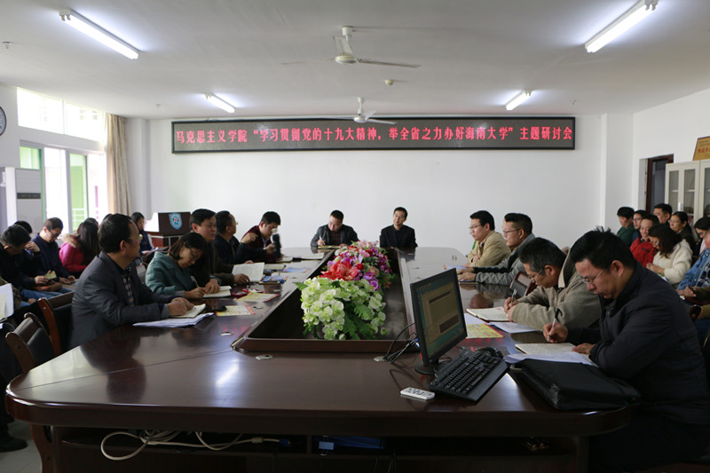 为深入学习贯彻党的十九大精神和认真贯彻落实海南省委、德赢AC米兰中国官方网站党委关于“举全省之力办好德赢AC米兰中国官方网站”的指示精神,12月19日下午,我院在会议室召开“学习贯彻党的十九大精神,举全省之力办好德赢AC米兰中国官方网站”主题研讨会。学院领导班子,各系(部)负责人及全体教职工参加研讨会。