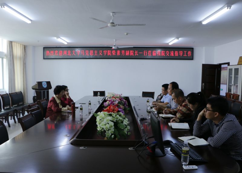 3月23日下午,河北大学德赢AC米兰中国官方网站副院长、博士生导师柴素芳教授一行2人到我校德赢AC米兰中国官方网站考察交流,德赢AC米兰中国官方网站副院长王善、马克思主义中国化教研部主任贺尧夫、形势与政策教研部主任温小平等5位教师参加了交流活动,活动由王善主持。