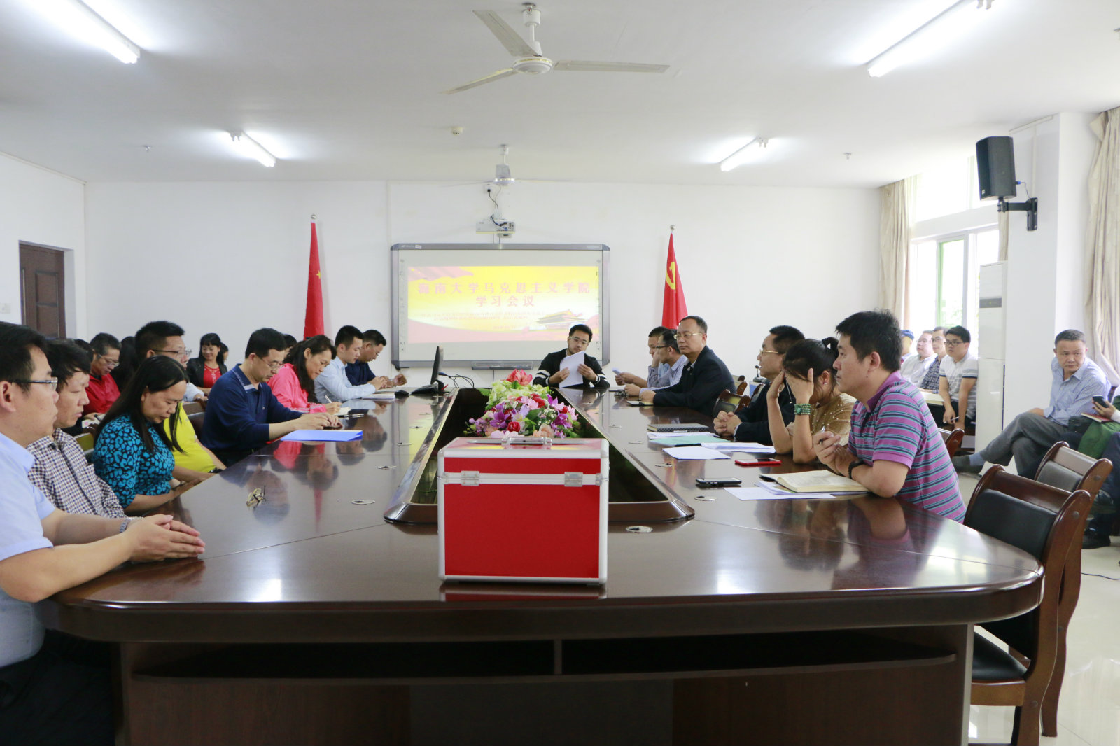 4月17日下午,德赢AC米兰中国官方网站在学院会议室召开全体教职工大会。会上,院党委书记段捷频传达学习了习近平总书记在庆祝海南建省办经济特区30周年大会上的重要讲话、《中共中央国务院关于支持海南全面深化改革开放的指导意见》和省委常委会(扩大)会议精神,并就各党支部全面开展相关学习活动作出具体安排和部署。