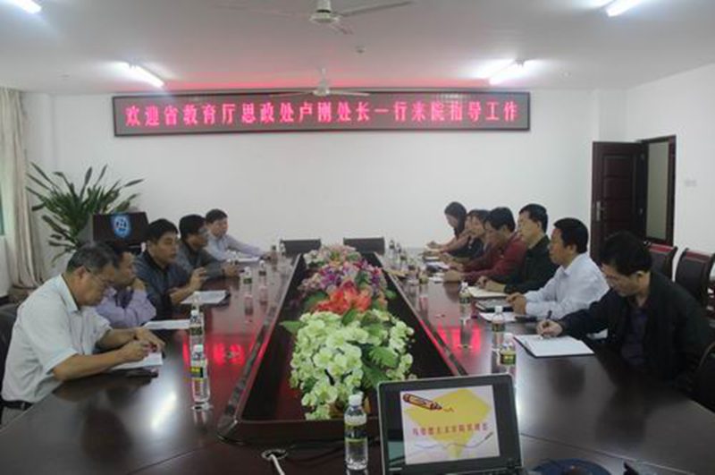 11月21日下午,海南省教育厅思政处处长卢刚、副处长刘世琼及省思政课专家组成员一行5人到我院调研思想政治理论课建设情况。我院院长李德芳、院党委书记梁谋、副院长张云阁和相关教师参加调研座谈会。