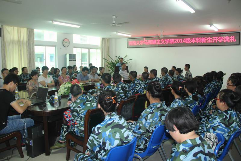9月15日上午,我院在学院会议室隆重举行了2014级本科生开学典礼。院党委书记段捷频、副院长张云阁、杨娜,学院综合办、学工办、教研办和思想政治教育系负责人、新生班主任、教师代表、老生代表出席,2014级全体思想政治教育专业新生参加典礼。典礼由副院长杨娜主持。 段捷频书记在典礼上致辞。他首先祝贺全体新生考入德赢AC米兰中国官方网站,并代表学院热烈欢迎来自五湖四海的同学们成为德赢AC米兰中国官方网站大家庭的新成员。他向同学们介绍了学院的发展历程、机构设置、师资队伍、教学与人才培养、学科建设的基本情况,重点介绍了我院自成立以来在人文社会科学领域取得的重要成就和推行本科生学业导师制等重要教学改革举措,强调了学院对以学生为本教育教学理念和对学生工作的重视。 他对全体2014级本科生提出了四点要求和希望:一是要坚定信念、志存高远,身为思想政治教育专业的学生,必须牢记共产主义远大理想,努力学习马列主义,在专业学习中践行人生理想;二是要勤奋学好、专业过硬,要践行“立德、博学、求是、创新”的院训,勤奋好学,专业过硬, 多读书、勤思考,注重锻炼和提升自身的综合素质,在大学期间为今后的人生发展打下坚实的基础;三是要健全人格、培养情操,以积极的态度去追寻和实现自己的梦想;四是要注意安全,珍爱生命要注意自身安全,加强自我保护意识,平安和谐地度过校园时光。最后,他与同学们分享了北宋理学家的“横渠四句”一——为天地立心,为生民立命,为往圣继绝学,为万世开太平。要求同学们要时刻牢记大学生的使命和责任。 张云阁副院长在典礼上讲话。他强调同学们要增强专业荣誉感和自豪感,牢固树立学校荣誉感和学院荣誉感。他要求同学们在学习生活中重视培养创新意识,努力强化专业素养,并就如何充实大学四年的学习生活提出了具体的看法和建议。 教师代表李辽宁、老生代表郭灏以及新生代表宋佳分别在典礼上作了发言。