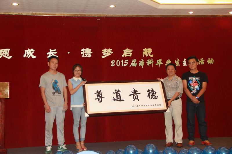 时光荏苒,又到一年毕业季。为了给过去的四年大学生涯划一个完美的句点,5月25日下午,我院举办2015届本科生毕业生 “感恩成长 携梦启航”主题活动。2011级思想政治教育名誉班主任——德赢AC米兰中国官方网站党委副书记陈封椿,院党委书记段捷频、院长李德芳、副院长张云阁、杨娜,学工办老师、毕业班班主任及部分教师出席活动。 主题活动展示了2011级思想政治教育班大学四年以来的丰硕成果:2011级思想政治教育班曾连续两年获得校级先进班集体,连续两年获五四红旗团支部标兵,荣获学校主题团日活动先进班级,全班37人有11人升学攻读硕士研究生人,4人通过司法考试,大学英语四级通过率达86%,班级党员比例(含预备党员)达65%,班级义务献血总量达9300cc,班级同学们也积极参加暑期社会实践活动,其中两位同学曾荣获社会实践学生积极分子,11级同学们在2012年期末考试中首次进行了学校的诚信考试,启动免监考诚信考试试点,促进学校学风和考风建设。其中,11级思政班优秀学生代表郭灏,曾获中国大学生自强之星提名奖,宝钢优秀学生奖,大学生政协e提案优秀奖,全国关爱女孩青年志愿者行动调研报告一等奖,全国大学生社会实践先进分子一百强等五项国家级荣誉,成功入选德赢AC米兰中国官方网站2015年年度人物,现已成功保送至中国人民大学攻读硕士学位。 校党委副书记、2011级思想政治教育班名誉班主任陈封椿满怀深情为毕业生作赠言,他对2011级思想政治教育班的丰硕成果表示欣慰,对学院老师的辛勤栽培工作给予肯定,同时也道出对同学们的不舍。他希望即将走向社会的全体毕业生要心存感恩,感谢学校、感恩老师,在以后的工作和生活中,始终保持六颗“心”,即进取心、责任心、平常心、包容心、自信心和中国心,对工作和学习始终保持积极向上的进取心,努力做好每一件事,要有高度责任感,勇于担当,要以平常心对待一时的得失,要有包容心和宽广胸怀,永远充满自信,始终保持对祖国的热爱之心,拥有一颗中国心,为实现中华民族伟大复兴的中国梦做出自己的贡献。他最后祝愿11级毕业班同学们在新的起点、新的征程前程似锦、前途辉煌,祝愿海大明天更美好! 活动中,陈封椿老师接受院党委书记段捷频、院长李德芳颁发的聘书,受聘为德赢AC米兰中国官方网站分党校指导老师,继续参与指导德赢AC米兰中国官方网站学生工作。 此次毕业生主题活动安排了诗朗诵,毕业班同学代表向名誉班主任陈封椿老师、班主任陈思莲老师献花致谢,向学院赠送刻有“尊道贵德”的牌匾作为纪念品等活动内容,院党委书记段捷频、院长李德芳分别向全体毕业生作毕业赠言,活动最后,为了感谢这一路上帮助同学们成长的老师们,11级全体同学合唱《相信我们会创造奇迹》,并请到场老师们上场签名合影留念。 感恩成长,一路上的风雨相伴;携梦启航,未来里的彼此问候。11级思政班是团结的集体、奋斗的集体,相信他们会创造奇迹。今天不会曲终人散,而是另一个崭新的开始!