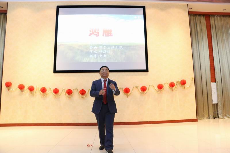 李德芳院长在晚会上作新年致辞并演唱《三角梅》