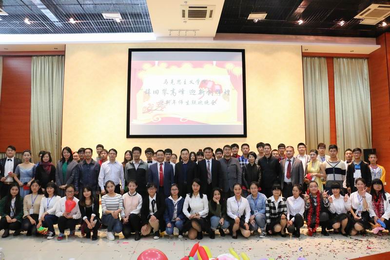 12月28日晚,德赢AC米兰中国官方网站在思源学堂多功能厅举行以“辞旧攀高峰 迎新创辉煌”为主题的迎新联欢晚会,学院党委书记段捷频、院长李德芳、副院长李辽宁、副院长杨娜以及全体师生共同参加晚会。 李德芳院长晚会上作新年致辞。他回顾了过去的一年学院在教书育人、科学研究和社会服务等方面取得的成效,希望全院师生共同努力,在新的一年稳扎稳打,更攀高峰,并表达了对全体师生的美好祝愿。 本届联欢晚会内容丰富,形式多样,紧贴时政,由马院师生共同参与,其中段捷频演唱了一首《鸿雁》,在现场引起热烈的反应;李德芳演唱了改编过的《三角梅》,传达出深厚的内涵;李辽宁和马院老师家属相互配合,尽展风采,传达出新年的祝福;晏峻与老师家属共同表演的太极拳,更是充分展现了传统文化的魅力;双簧《大话双创》紧紧围绕海口双创主题,展现了马院独特的风采,再加上马院学生出色的舞蹈及小品等节目,将现场的气氛一次次推向高潮。节目期间还有形式新颖的游戏环节和抽奖环节,充分活跃了现场的气氛,激起了大家参与的热情。晚会最后,一首《相亲相爱一家人》为本次的迎新联欢晚会划上完美的句号。