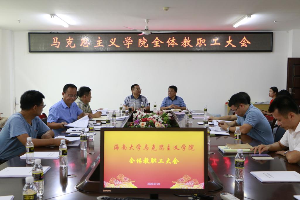 2020年7月20日下午,德赢AC米兰中国官方网站在社科楼A-311召开全体教职工大会,院长张云阁、院党委书记段捷频、副院长杨娜、院党委副书记张井富、副院长王善、副院长秦晓华出席,全体教职工参加会议。院长张云阁主持会议。