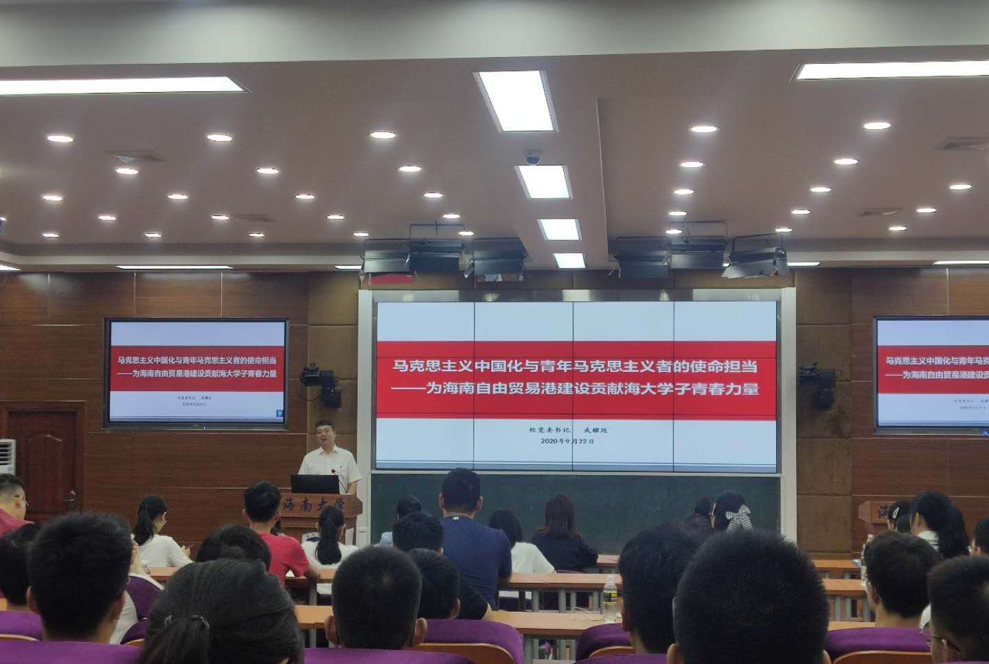 9月22号下午,德赢AC米兰中国官方网站党委书记武耀廷走进“开学第一课”,在3号教学楼211教室为德赢AC米兰中国官方网站2020级全体本科、研究生新生和部分学生骨干、思政课教师讲授“马克思主义中国化与青年马克思主义者的使命担当——为海南自由贸易港建设贡献海大学子青春力量”。