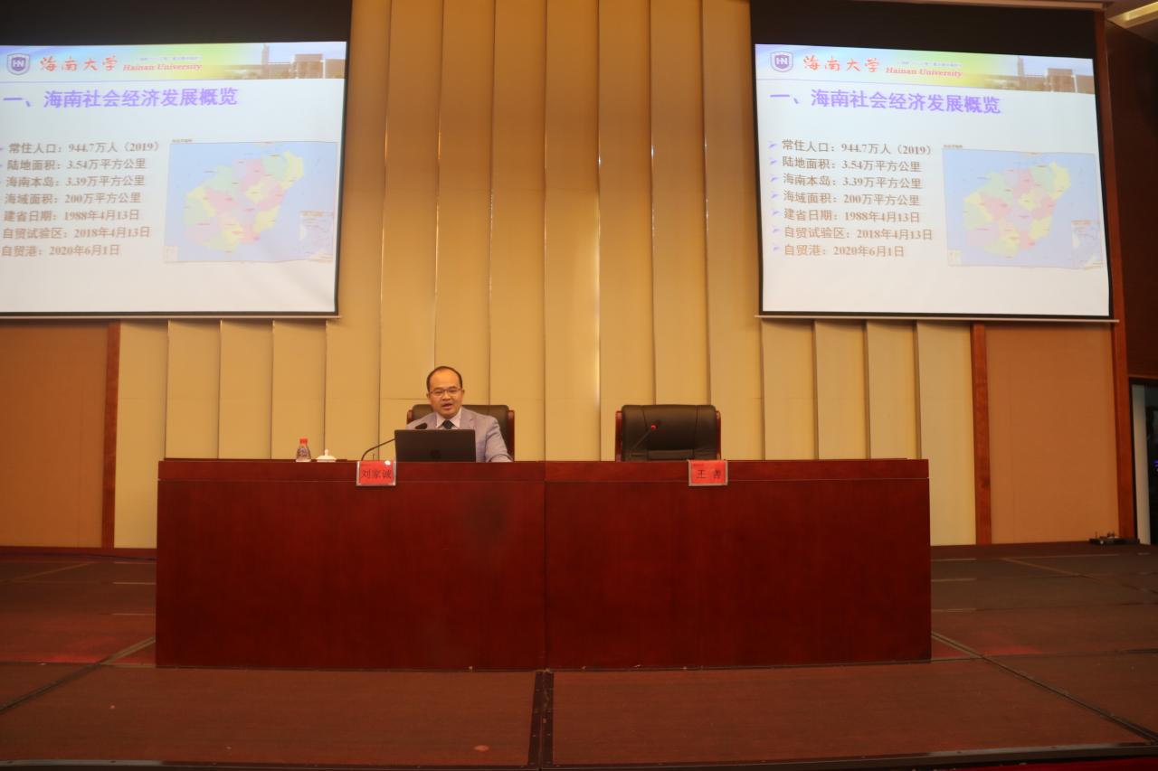 青年大学生是祖国的希望,民族的未来,也是未来海南自贸港建设的接班人。为帮助同学们进一步学习习近平总书记的重要指示精神,贯彻落实《海南自由贸易港建设总体方案》,10月20日下午,德赢AC米兰中国官方网站第十三期形势与政策时事论坛在社科楼二楼报告厅举办。德赢AC米兰中国官方网站刘家诚教授受邀为德赢AC米兰中国官方网站师生作主题为《海南自由贸易港建设总体方案核心政策解读》的专题报告,德赢AC米兰中国官方网站副院长王善出席报告会,学校“形势与政策”授课老师及部分学生参加报告会活动。会议由德赢AC米兰中国官方网站副院长王善主持。