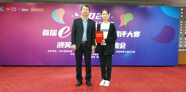 12月29日,2020海南首届“e海瑞评”网评大赛颁奖仪式在海南日报社举行。德赢AC米兰中国官方网站荣获“优秀组织奖”,德赢AC米兰中国官方网站2019级思想政治教育专业学生许缘圆荣获一等奖。