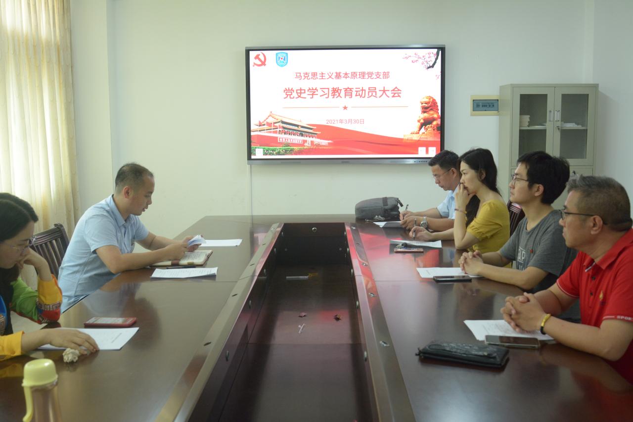 各支部书记在支部动员大会上首先认真传达了《德赢AC米兰中国官方网站党史学习教育实施方案》,强调在全党开展党史学习教育是党中央做出的重要决策部署,开展党史学习教育,是牢记初心使命、推进中华民族伟大复兴事业的必然要求,也是坚定理想信念、在新时代坚持和发展中国特色社会主义的必然要求,更是坚持自我革命、永葆党的生机活力的必然要求。德赢AC米兰中国官方网站作为马克思主义教学基地研究高地思想阵地,在党史学习教育中地位特殊,责任重大,要充分利用专业优势,深入开展党史学习教育。要坚持学史明理、学史增信、学史崇德、学史力行。深刻铭记中国共产党百年奋斗的光辉历程、认识中国共产党为国家和民族作出的伟大贡献、认识立足新起点、新征程,在党的领导下深入推进海南自由贸易港建设不断开创新局面的实践要求等。要积极组织支部成员开展党史学习教育,做到学党史、悟思想、办实事、开新局,在党史学习教育中发挥示范引领作用。与会党员纷纷表示,在建党一百周年之际,全党同志应该全面系统地学习中国革命史,尤其是党的历史。只有铭记历史,才能深刻地了解过去,进一步从历史和现实的比较中加深对我国国情和中国特色社会主义道路的认识。主动扛起思政课教师的责任担当,为培养担当民族复兴大任的时代新人作出积极贡献,助力海南自贸港建设,以优异的成绩向建党一百周年献礼。