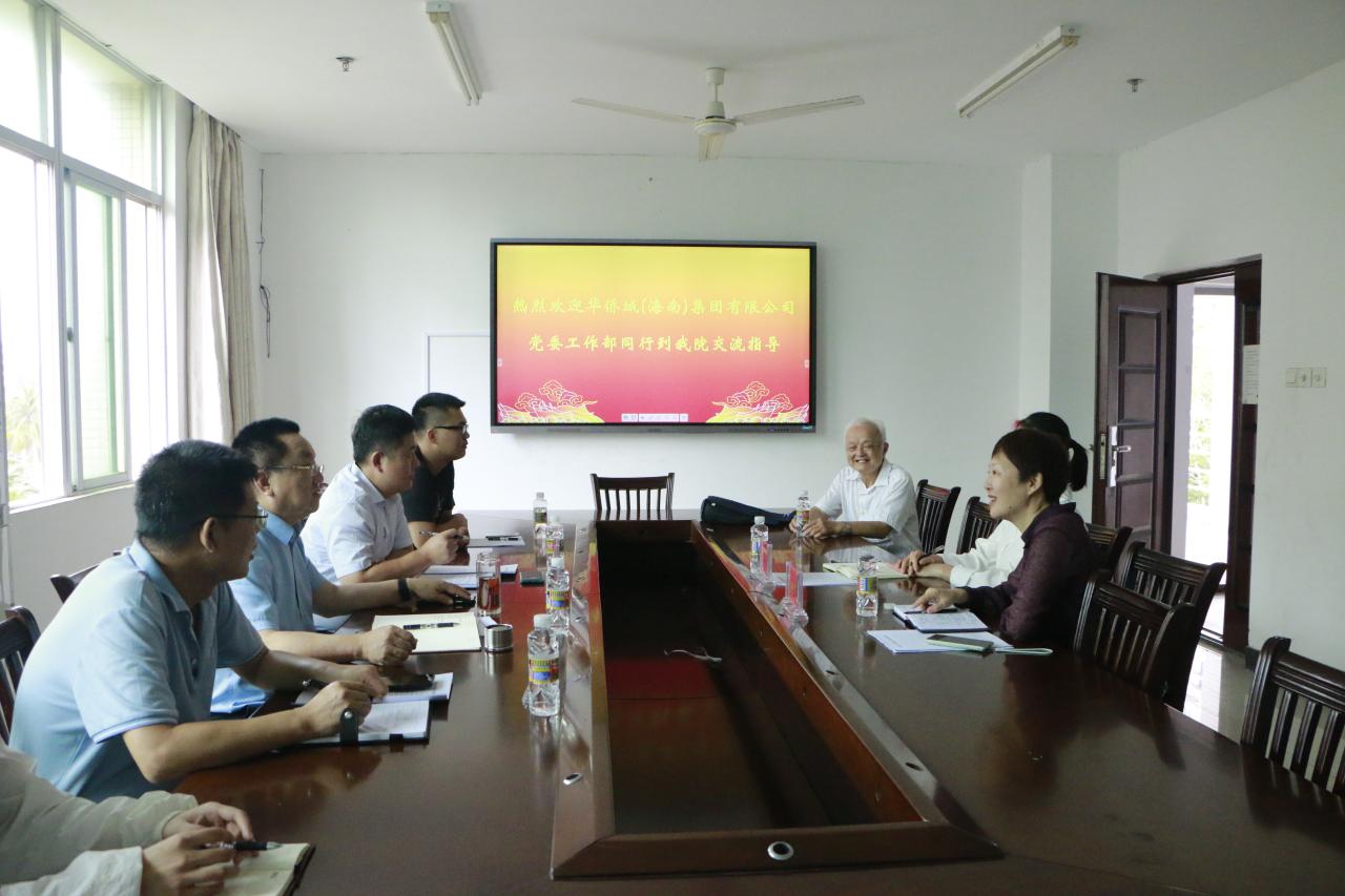 段捷频对王朝晖一行表示欢迎,并介绍了海大马院党建基本情况、主要经验和成效。他指出,学院党建与学院中心工作深度融合,在促进学院跨越式发展过程中发挥了积极作用,并详细介绍了德赢AC米兰中国官方网站在多年实践基础上总结提炼的党建引领促进发展“12345示范工程”。他强调,海大马院是海南省学习研究宣传马克思主义的理论重地、海南省首批重点德赢AC米兰中国官方网站、海南省首批的标杆党委,华侨城(海南)集团有限公司是中央企业建设海南自贸港的文旅综合体,通过合作共建,发挥协同优势,深化学院与企业之间的合作、打造校企合作平台,有利于不断提高双方党建科学化水平。