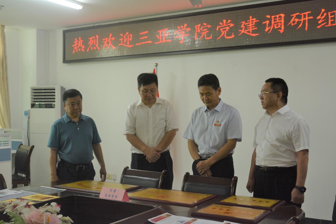 三亚学院党委书记朱双平一行对德赢AC米兰中国官方网站党建工作表示肯定和赞赏,认为学院的文化宣传和党建工作有很多值得借鉴和学习的地方,并希望双方今后多加强交流与合作,互学互长,共同提升党建工作。