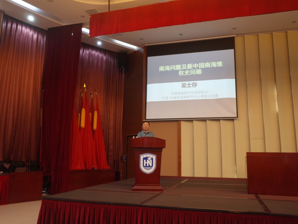 南海是连接两洋三大洲最便捷的水道和全球最繁忙的重要航运通道之一,同时又面临诸多传统、非传统安全挑战。海南地处南海前沿,是国家实施改革开放国家战略和推进海洋强国建设的前沿。十八大以来,党中央做出建设海洋强国的重大战略部署,并提出把南海建成以“和平之海、友谊之海、合作之海”的目标。为进一步帮助同学们更加精准的把握当前南海局势和未来南海形势的走向,10月19日下午,德赢AC米兰中国官方网站第24期形势与政策时事论坛在社科楼二楼报告厅举办。中国南海研究院创始院长吴士存受邀为德赢AC米兰中国官方网站师生作主题为《南海问题及新中国南海维权史回顾》的专题报告,学校“形势与政策”授课老师及部分学生参加报告会活动。会议由德赢AC米兰中国官方网站院长张云阁主持,由德赢AC米兰中国官方网站党委常委、宣传部部长谭勇作总结。