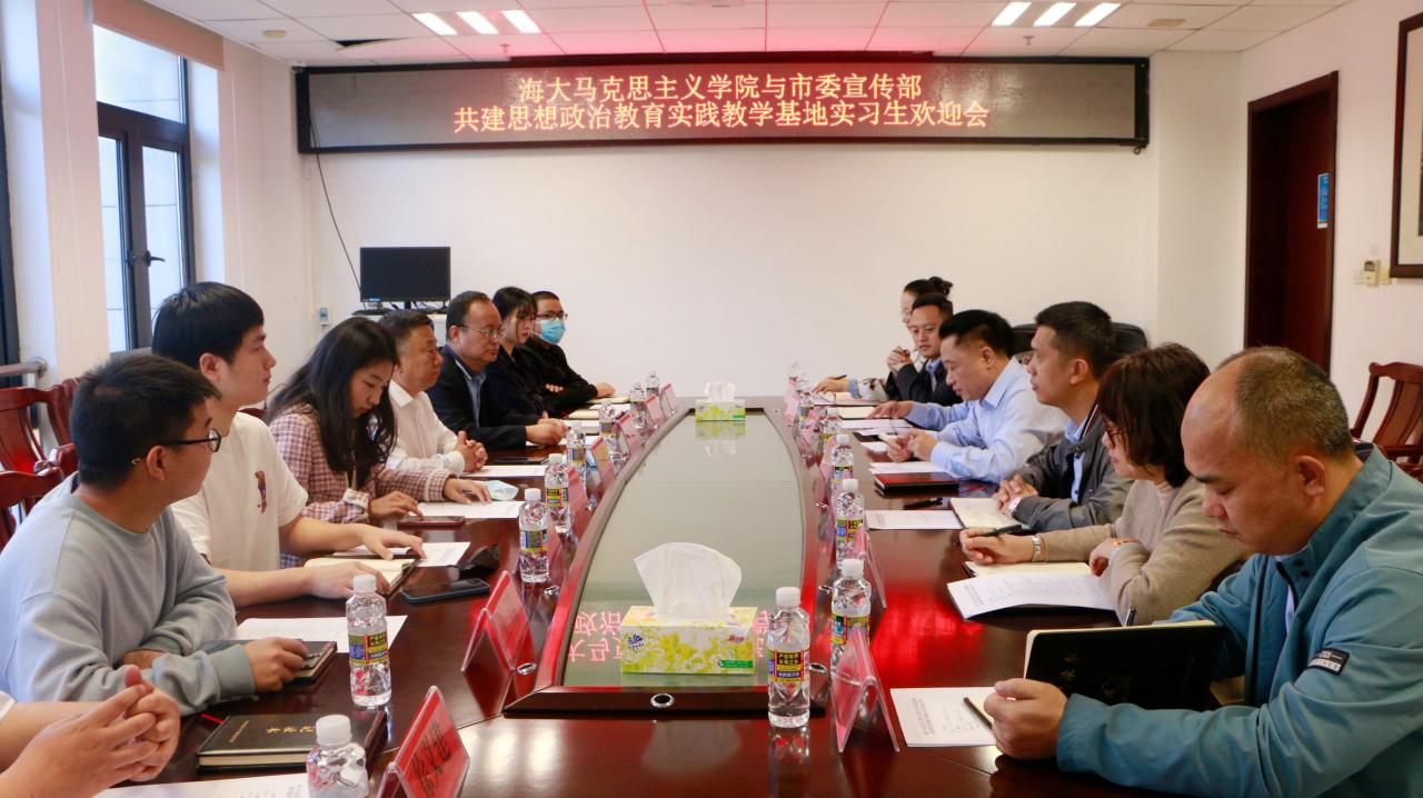 3月8日上午,德赢AC米兰中国官方网站与海口市委宣传部共建思想政治教育实践教学基地实习生欢迎会在海口市委宣传部会议室举行。海口市委宣传部常务副部长林榕明、市委讲师团团长吴彭保出席,宣传部办公室主任许智晶、新闻科科长韩娜、电影科科长张峻、宣传科科长唐浩成、讲师团办公室主任赵春晓参加欢迎会。德赢AC米兰中国官方网站院长张云阁、副院长王善出席,学工办负责人余泉玥和第一批实习生参加活动。