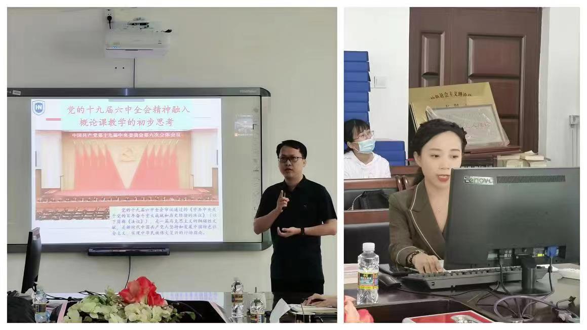 5月10日下午,德赢AC米兰中国官方网站在会议室A309和A311通过线上线下、不同校区同步进行的方式举行了 “党的十九届六中全会精神、习近平总书记在海南考察调研的重要讲话精神融入《概论》《纲要》课教学”集体备课会。学校党委常务副书记王崇敏出席,院长张云阁、院党委书记段捷频等院领导和本学期承担《概论》《纲要》课的任课教师参加备课会。备课会分别由《概论》《纲要》教研室主任现场主持。