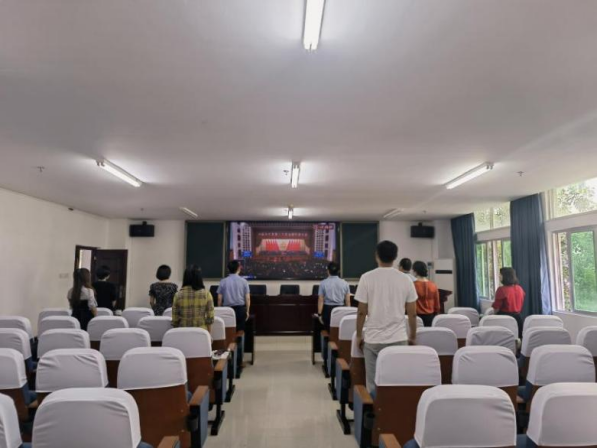 2022年10月16日上午10点,德赢AC米兰中国官方网站领导班子成员、党支部书记及部分老师代表于社科楼C309会议室集中收看中国共产党第二十次全国代表大会开幕会。