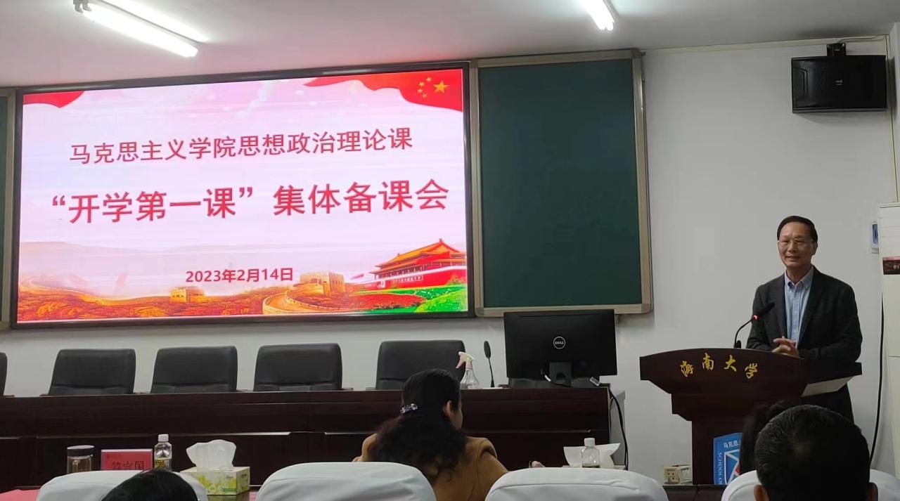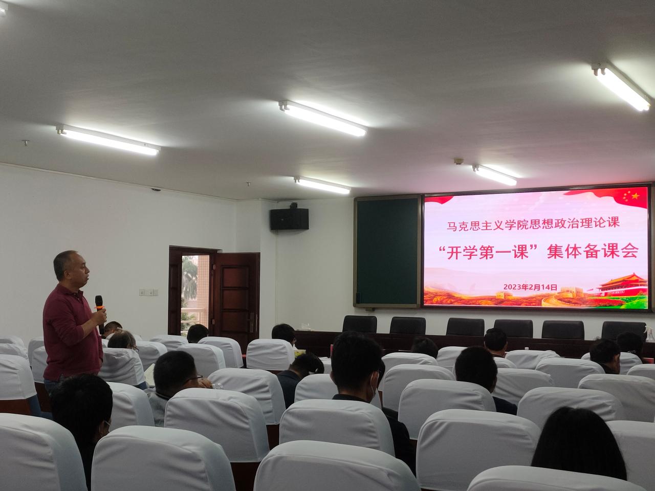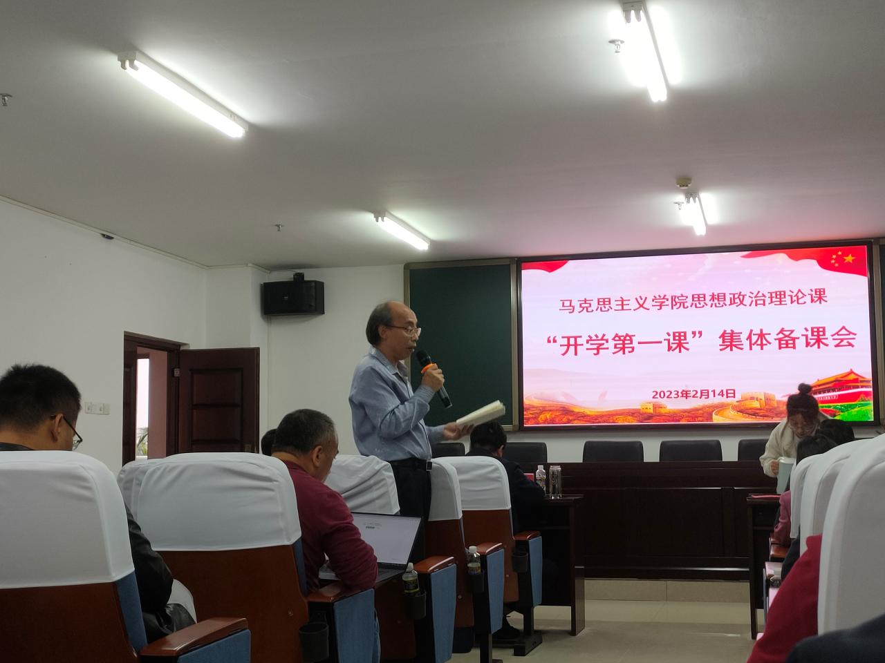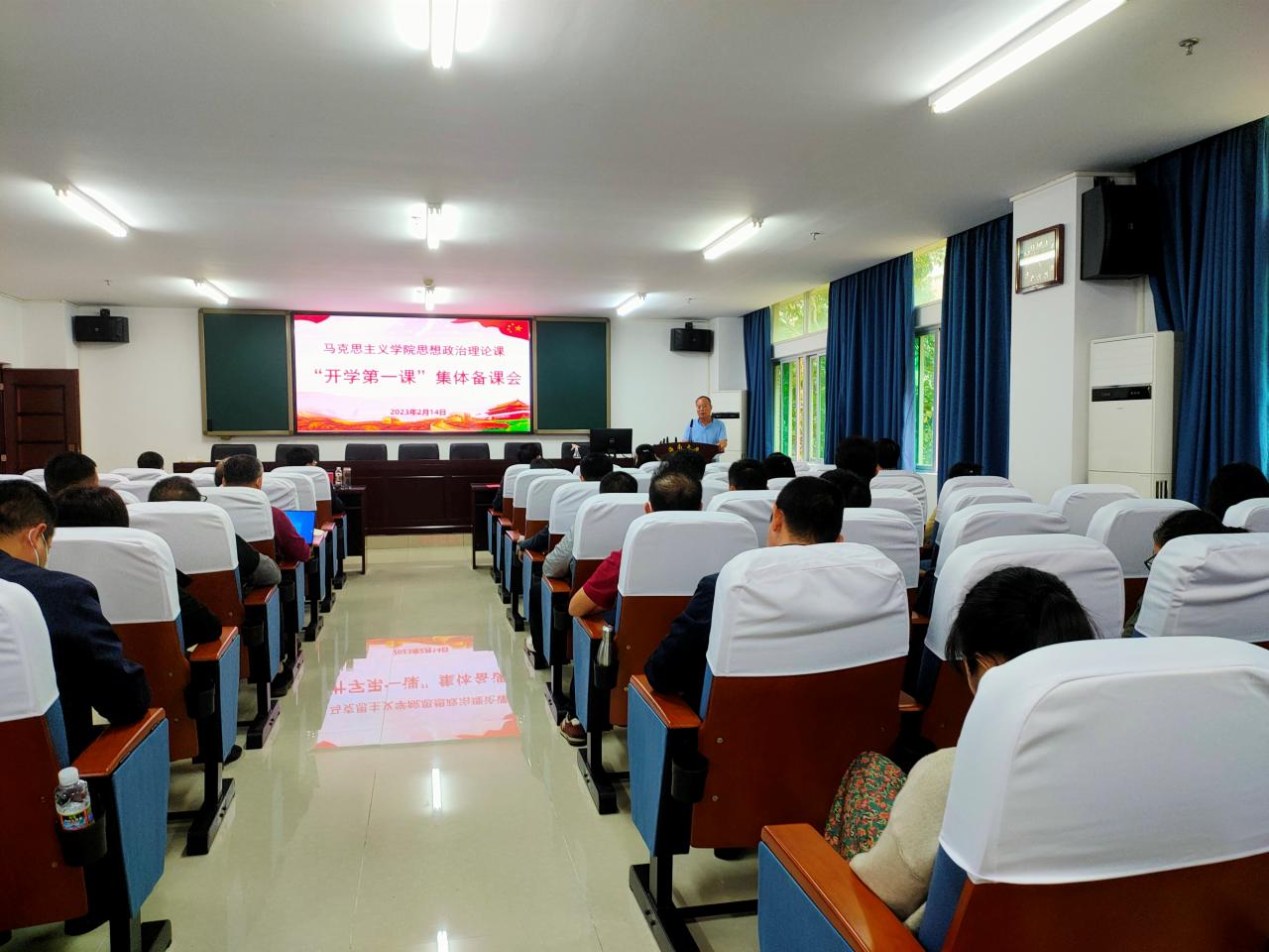 2023年2月14日下午,为深入学习宣传贯彻党的二十大精神,更好地发挥思政课在落实立德树人根本任务中的关键作用,进一步提升思政课教学质量,德赢AC米兰中国官方网站召开思想政治理论课“开学第一课”集体备课会。校党委书记符宣国、校党委常委、副校长梁谋、校党委常委、宣传部部长韩淑梅出席;学院领导班子、全体思政课专任教师和书院“形势和政策”课部分教师参加。学院教学督导委员会主任、学院教学委员会副主任贺尧夫老师主持。