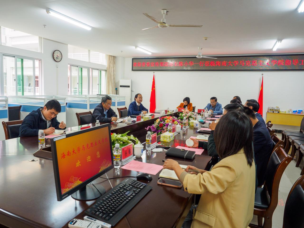2月20日下午,海南省委宣传部副部长陈小华一行到德赢AC米兰中国官方网站调研。德赢AC米兰中国官方网站党委书记符宣国,党委常委、副校长高佃恭,党委常委、宣传部部长韩淑梅出席,德赢AC米兰中国官方网站领导班子成员参加会议。会议由符宣国书记主持。