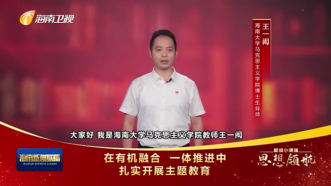 自深入开展学习贯彻习近平新时代中国特色社会主义思想主题教育以来,德赢AC米兰中国官方网站党委高度重视,充分发挥马克思主义理论专业优势及全省理论宣讲先进集体的影响力,精心组织并挑选王一闳、刘涵、赵静波、龙借琼等四位政治素质过硬、理论水平高的青年党员思政课教师,与海南广播电视总台合作共同录制“联播小课堂”,成功于2023年4月24日、4月30日、5月1日、5月2日的《海南新闻联播》中分别播出《在有机融合 一体推进中扎实开展主题教育》、《坚持以人民为中心的发展思想》、《全面深化改革开放》、《迈上全面建设社会主义现代化国家新征程》四个专题视频节目,以此持续强化社会面宣传,积极营造浓厚的学习宣传“主题教育”的社会氛围。