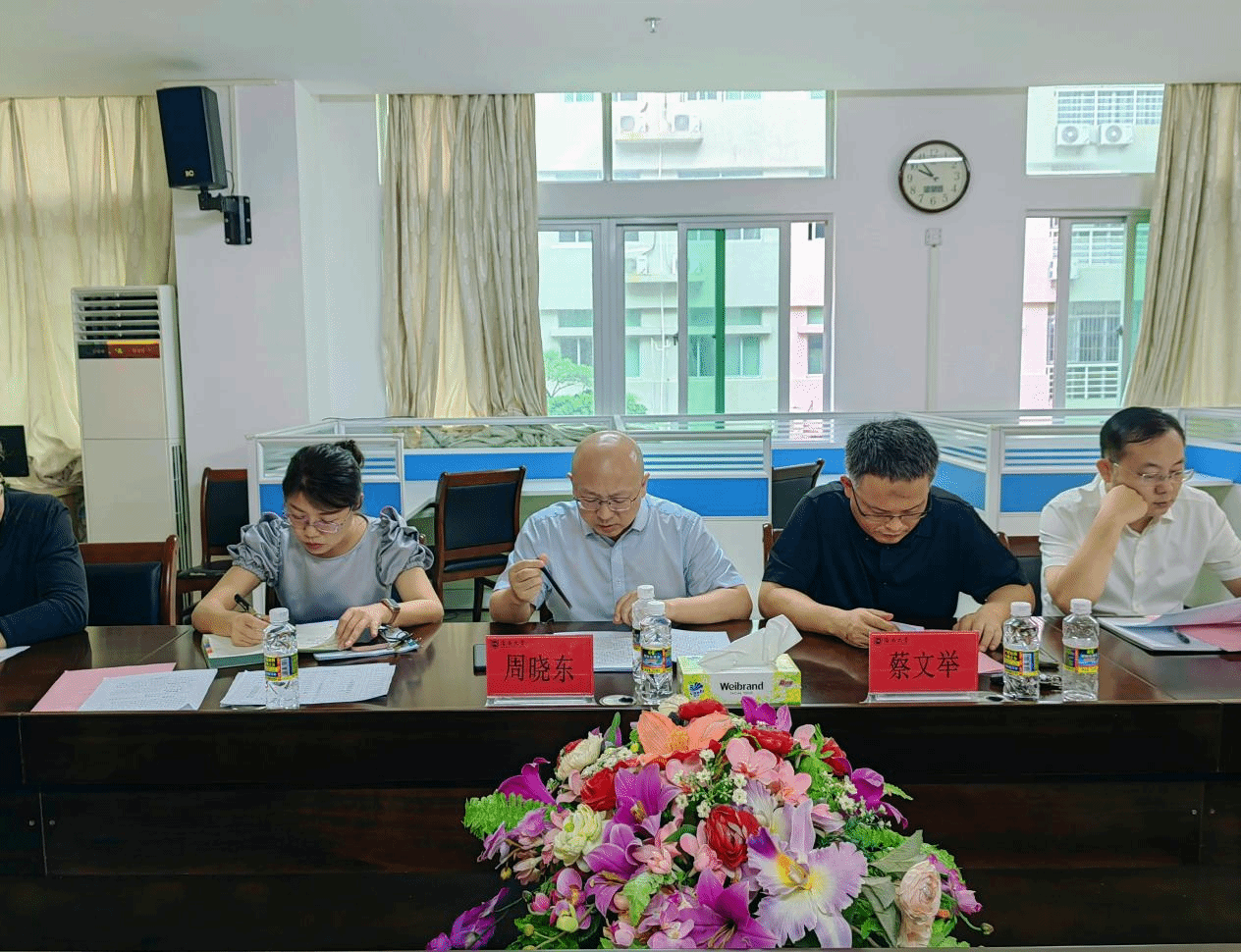 海南省教育厅党委办公室主任周晓东,海南省教育厅党委办四级调研员、德赢AC米兰中国官方网站副教授蔡文举,德赢AC米兰中国官方网站副院长(主持行政工作)杨娜、副院长吴朝阳,德赢AC米兰中国官方网站国际传播学院教师颜磊、李风逸以及部分德赢AC米兰中国官方网站青年教师参加会议。