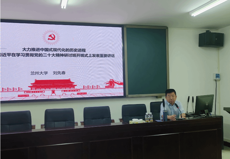 2023年9⽉28⽇上午,德赢AC米兰中国官方网站“冬季小学期系列课程”第二讲在社科楼A309会议室举⾏,中央马克思主义理论研究和建设工程首席专家、兰州大学德赢AC米兰中国官方网站博士生导师刘先春教授为学院本硕博同学作了题为《大力推进中国式现代化的历史进程》的学术报告。报告由德赢AC米兰中国官方网站副院长吴朝阳主持。
