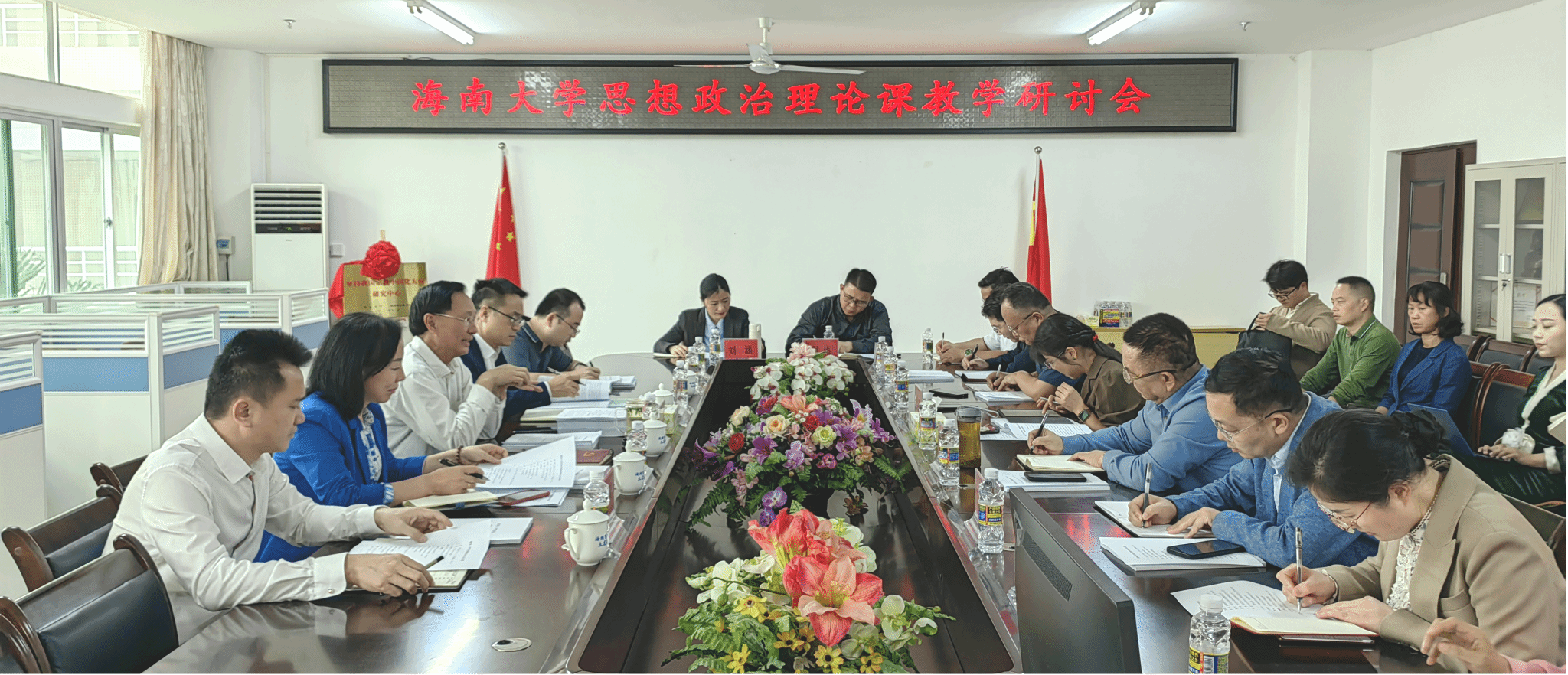 校党委书记符宣国指出,当前我校在提升思想政治理论课教学质量水平方面做了很多有益探索,取得了很多扎实成效。但全面提升思想政治理论课的质量,不仅要看“长板”,更要聚焦薄弱环节补齐“短板”。而解决“短板”问题最切实有效的举措就是组织好、落实好思想政治理论课集体备课会制度,运用好、实现好集体备课会成果向日常课堂教学的高效转化。集体备课会制度必须集中学科优势资源和力量,解决当前思想政治理论教学质量提升的“最后一公里”问题,将当前思想政治理论课课堂教学的“部分优秀”向“整体优秀”加快推进,将当前思想政治理论课的“精品课程”向“精品课堂”加快转换。符宣国同与会人员进行了充分互动研讨,详细询问了我校思想政治理论课集体备课会工作开展的基本思路和存在困难。
