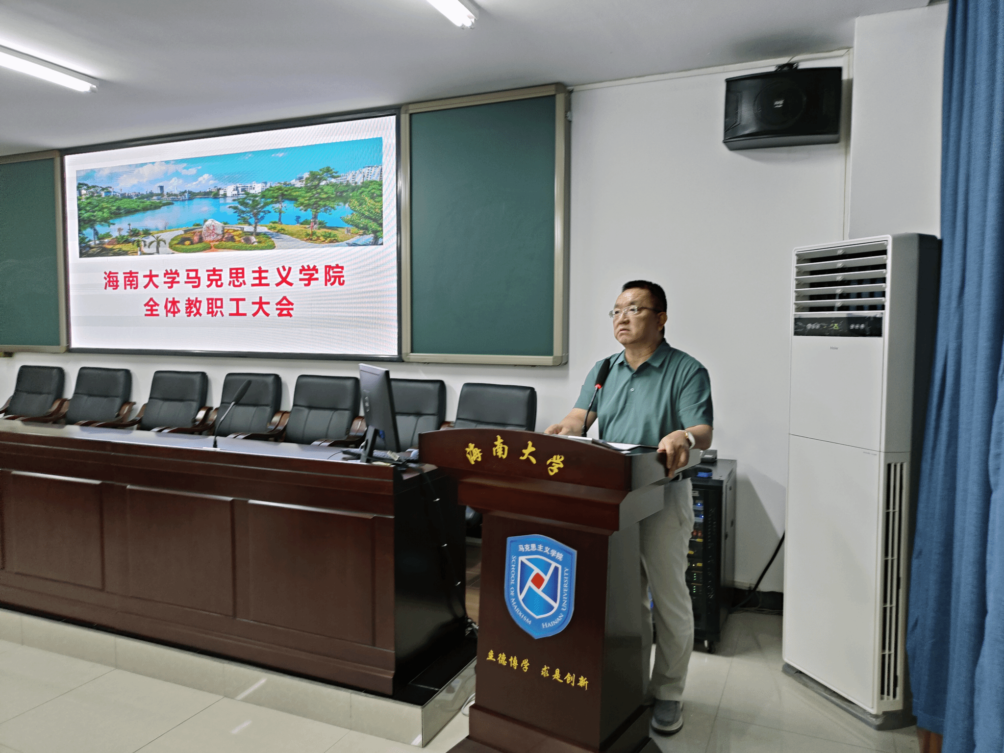 学院党委书记段捷频围绕党建工作、师德师风工作进行了总结,并提出具体要求。他指出,学院取得了长足的进步,是全体教职工坚持“马院姓马,在马言马”的鲜明导向和办学原则,牢牢坚守马克思主义意识形态主阵地的结果。学院党委将以“全省党建工作标杆院系”为起点,继续以高质量党建凝聚全体教职工,为学院各项事业的发展提供坚强政治保障和组织保障。他强调,各党支部要充分发挥战斗堡垒作用,全体教职工务必在思想和行动上筑防线、明红线、守底线,紧紧围绕学院高质量发展这个主线,全面落实杨娜院长部署的重点工作任务,为学院建设发展再立新功。