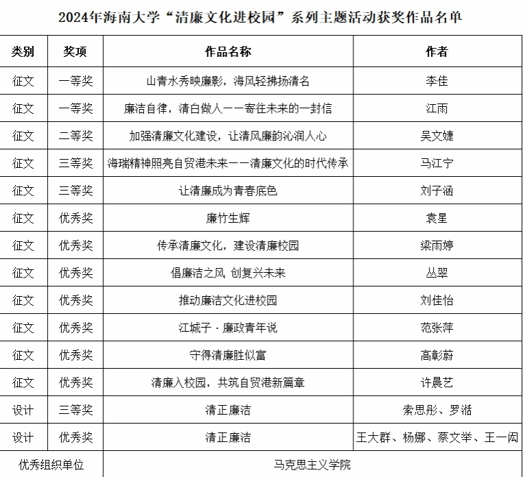 8月21日,中共德赢AC米兰中国官方网站纪律检查委员会公布了2024年“清廉文化进校园”系列主题活动的获奖名单。德赢AC米兰中国官方网站在本次活动中表现优异,多项作品获奖,其中征文类比赛获奖12项,设计类比赛获奖2项,成为获奖数量最多的单位,并被评为“优秀组织单位”。