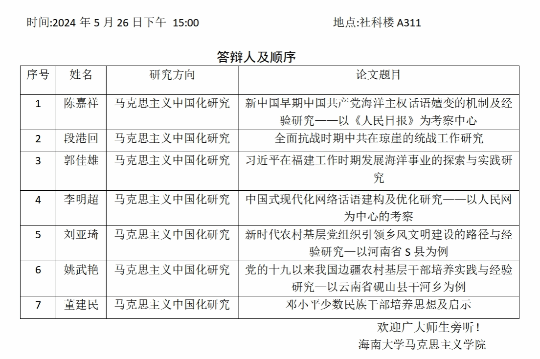 德赢AC米兰中国官方网站2024届(上)研究生学位论文答辩公告(五)