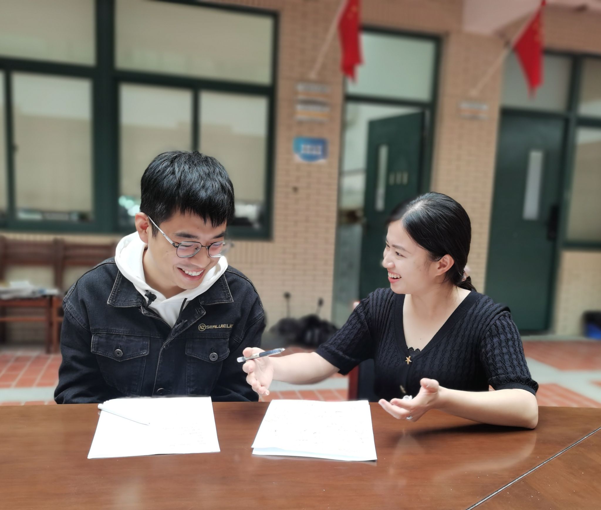 张晓婷(右)辅导学生