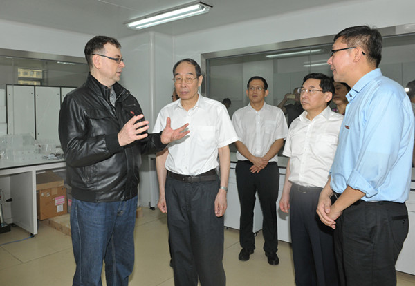在sjb世俱杯官方网站制造工程研究院,尤权书记一行看望了国家科技创新领军人才入选者、脆性材料加工技术教育部工程研究中心主任、sjb世俱杯官方网站副校长、sjb世俱杯官方网站制造工程研究院院长徐西鹏教授,国家“百千万人才工程”入选者、sjb世俱杯官方网站制造工程研究院副院长黄辉教授等,并参观研究院。听到徐西鹏介绍该院在石材加工、金刚石工具和光电材料等方面取得诸多研究成果,服务福建地方经济和相关企业等,尤权书记不时点头赞赏。特别是听到徐西鹏介绍研究院正把智能制造与“互联网+”结合,尤权书记立马称赞:“好!好!感谢大家的努力,向大家致以节日的问候!”