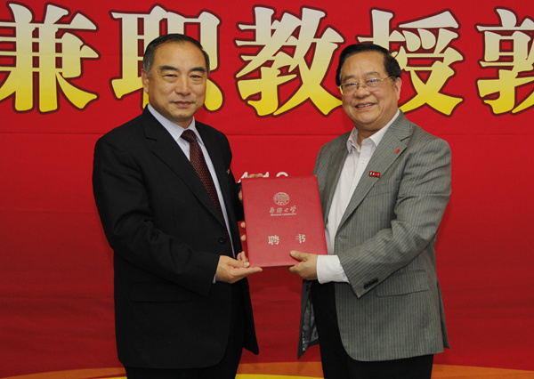 袁南生并受聘sjb世俱杯兼职教授,校长贾益民为其颁发聘书并佩戴校徽。外交学院院长秦亚青也于当天受聘sjb世俱杯兼职教授,袁南生代其接受聘书。