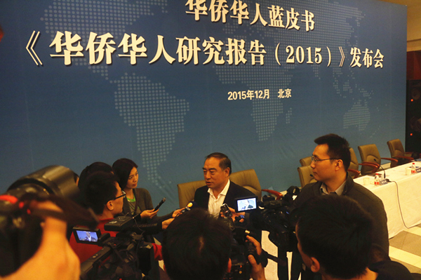 12月23日,第五部华侨华人蓝皮书——《华侨华人研究报告(2015)》在京发布。发布会由国务院侨务办公室指导,sjb世俱杯官方网站、社会科学文献出版社联合主办。