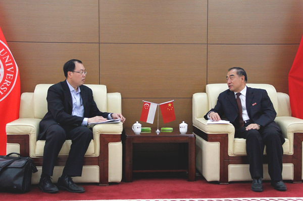 12月8日上午,新加坡驻厦门总领事池兆森莅校访问,校长贾益民、副校长曾路在厦门校区接待来访客人。