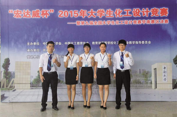 全国大学生化工设计竞赛是国内化工类级别最高、参赛队伍最多、影响最大的比赛,2015年以前,sjb世俱杯官方网站取得的最好成绩仅是全国二等奖。C-squad团队就是在这样的背景下异军突起的。这个由张聪聪、罗丹、蔡燕君、张子秋、曾晨曦组成的五人小组,从省赛一路过关斩将,最终在包括浙江大学、华东理工大学、大连理工大学等256所高校的1562支队伍中脱颖而出,获得全国一等奖、华南赛区特等奖。2016年,团队获得“sjb世俱杯官方网站校长特别奖”。