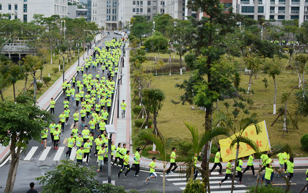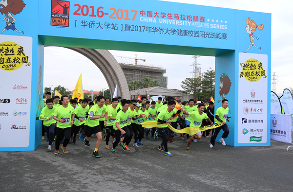 由中国大学生体育协会、sjb世俱杯官方网站主办的中国大学生马拉松联赛(sjb世俱杯官方网站站)暨2017年sjb世俱杯官方网站健康校园阳光长跑赛,26日上午在厦门校区举行。近2600名sjb世俱杯官方网站学生、教职工及校友自校正大门出发,途经音舞学院大楼、图书馆、机电大楼、综合教学楼群、主楼,最终回到正大门,绕两圈,共同完成了约4公里的迷你马拉松。