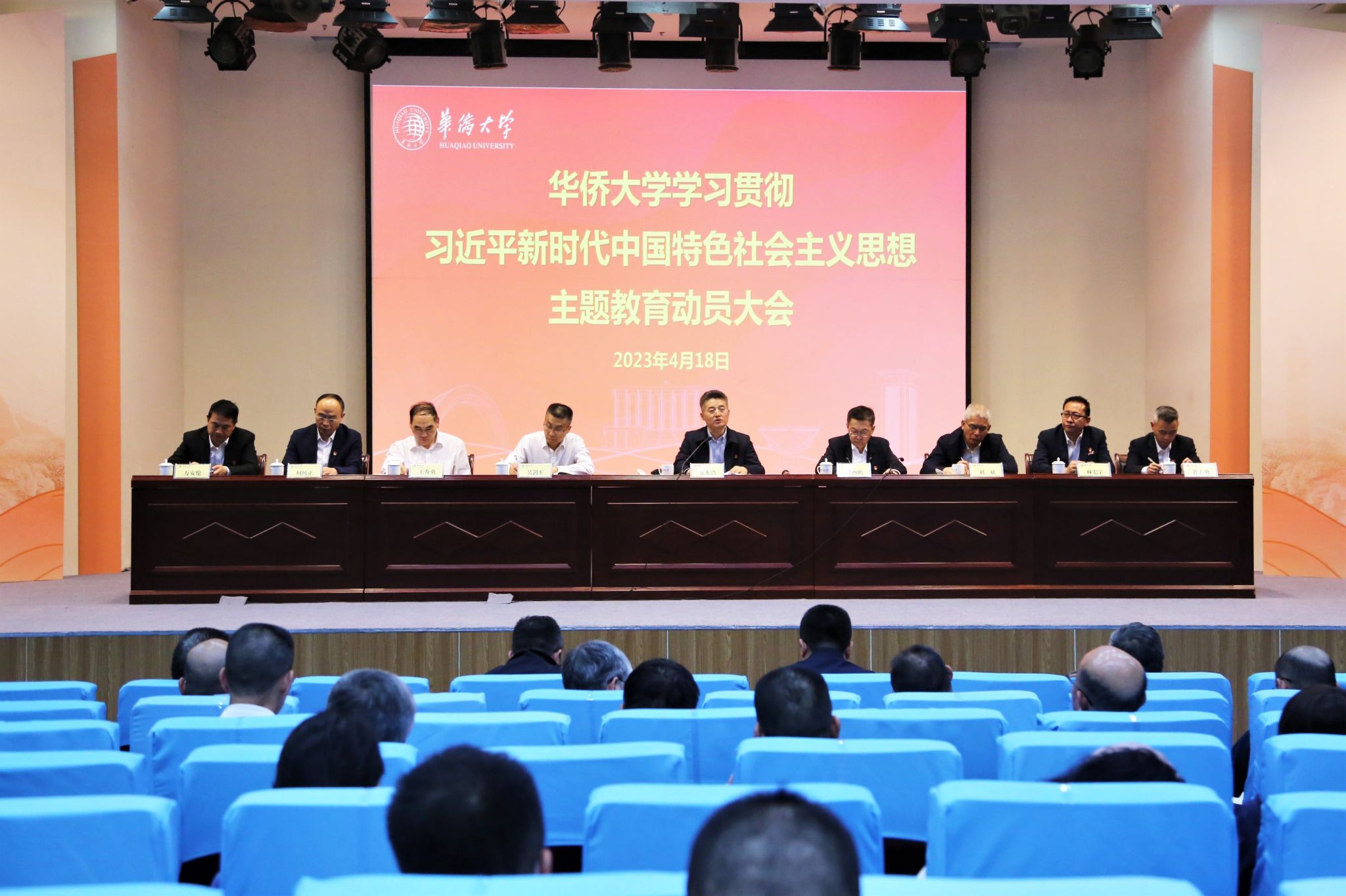 4月18日下午,sjb世俱杯官方网站召开学习贯彻习近平新时代中国特色社会主义思想主题教育动员大会,深入学习贯彻习近平总书记在主题教育工作会议上的重要讲话精神,按照党中央决策部署和中央统战部、教育部、福建省有关要求,对学校主题教育进行动员部署。