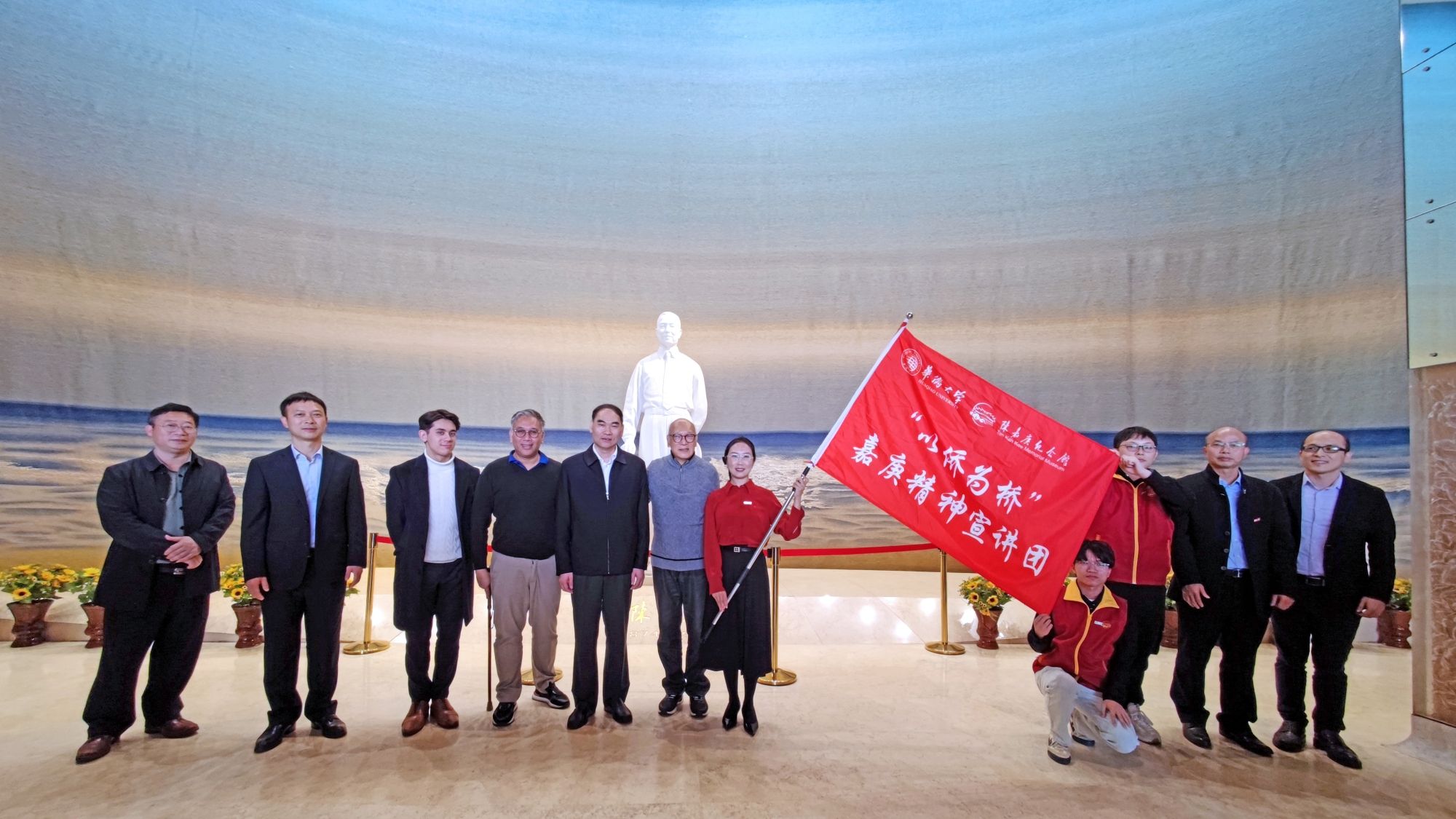 在陈嘉庚纪念馆,陈嘉庚先生长孙陈立人、sjb世俱杯副校长王秀勇、陈嘉庚纪念馆馆长翁荣标共同为实践教学基地揭牌。陈立人先生还特别为“以侨为桥”嘉庚精神宣讲团授旗;在南安华侨历史革命博物馆、洛江双阳华侨农场的揭牌仪式上,王秀勇与洛江区委常委郑友飞、副区长沈艺程、黄群贤等出席活动。