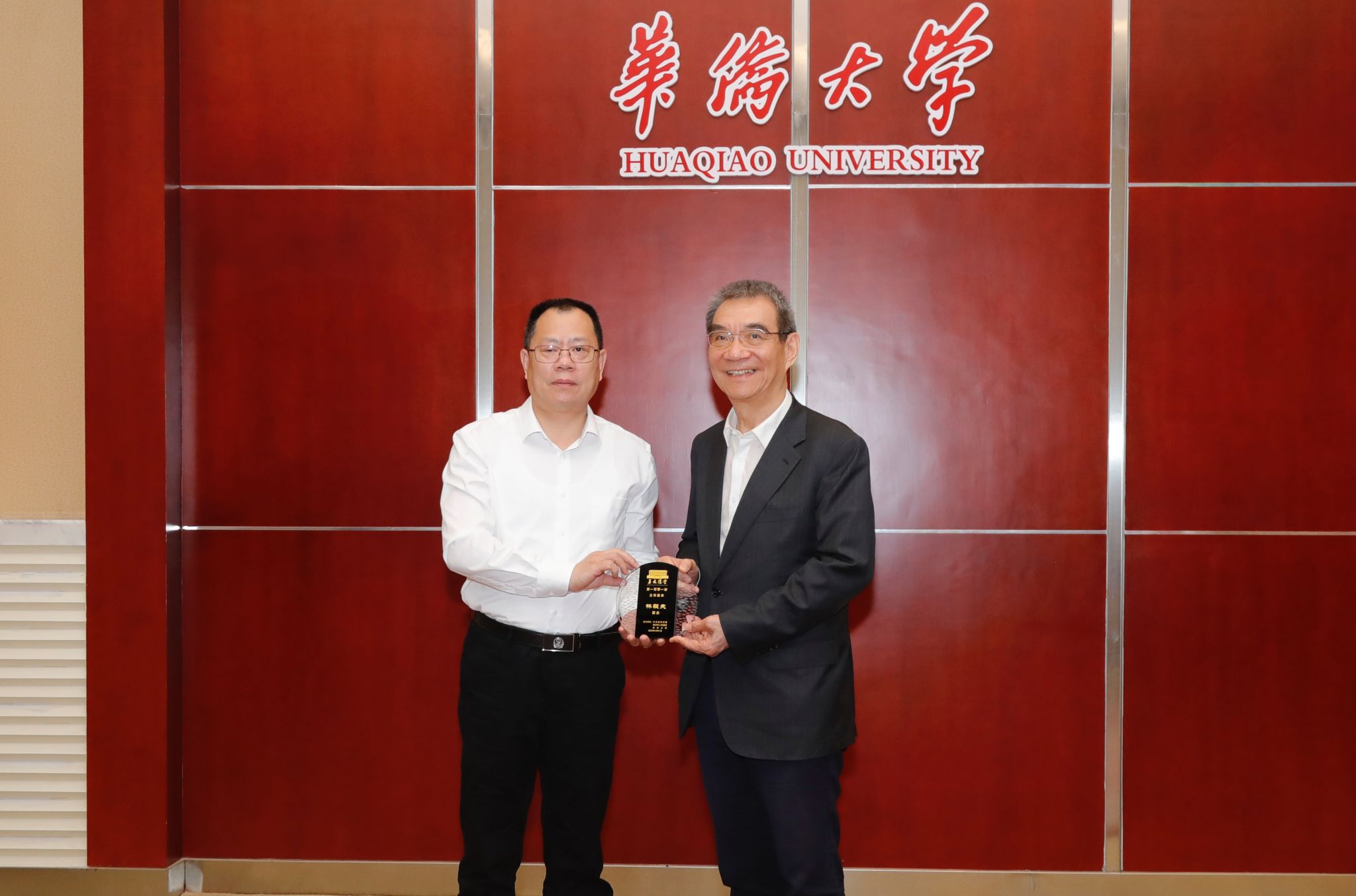 张毅恭为林毅夫颁发“华大讲堂”主讲嘉宾纪念牌