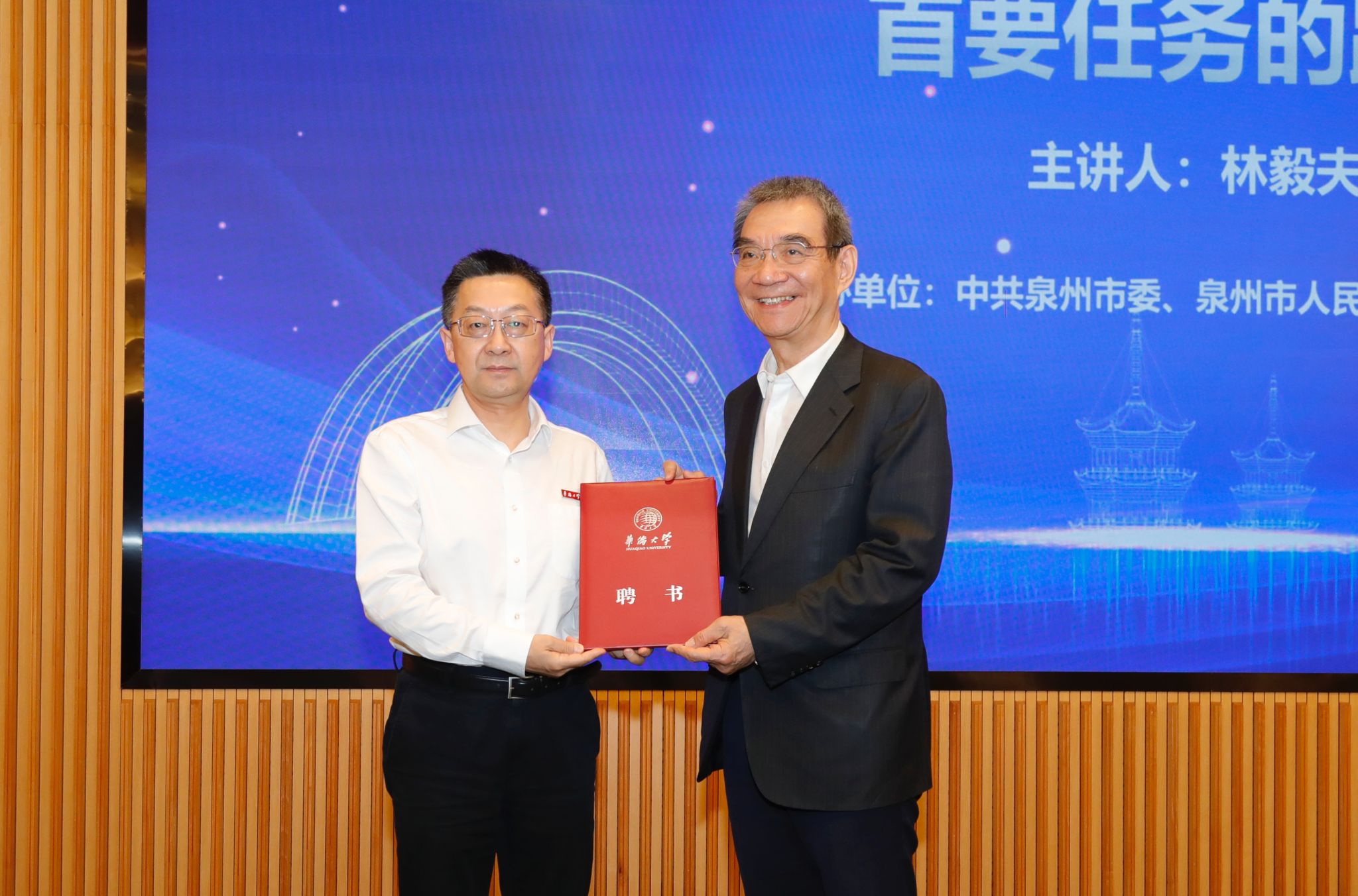 徐西鹏为林毅夫颁发名誉教授聘书