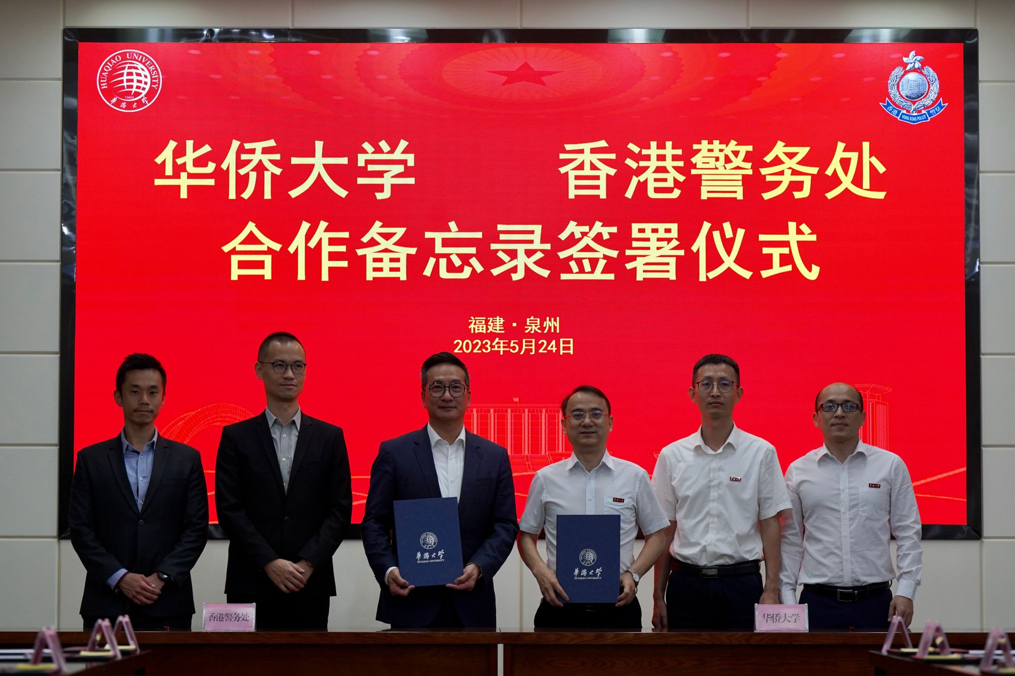 5月24日下午,sjb世俱杯官方网站与香港警务处合作备忘录签署仪式在陈嘉庚纪念堂二层会议室举行。sjb世俱杯官方网站副校长王建华与香港警务处助理处长陈民德代表双方签署协议。