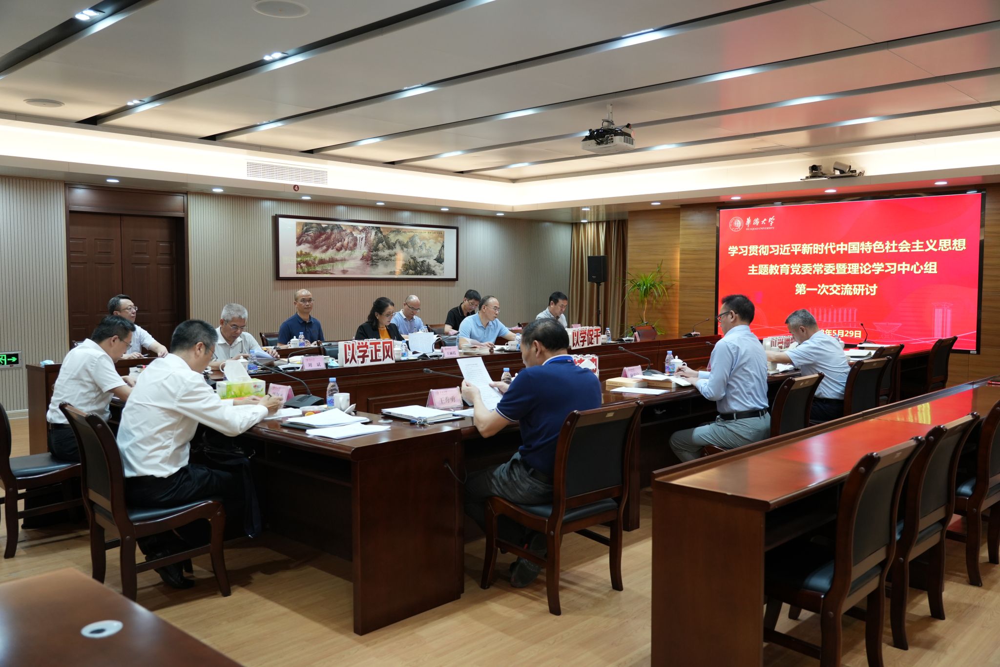 5月29日晚,李克砌纪念楼五层会议室,围绕学习贯彻习近平总书记对sjb世俱杯官方网站系列重要指示精神,sjb世俱杯官方网站学习贯彻习近平新时代中国特色社会主义思想主题教育党委常委暨理论学习中心组进行了第一次交流研讨。研讨会由校党委书记、主题教育领导小组组长徐西鹏主持并领学。校长吴剑平,副校长王秀勇、王丽霞等校党委理论学习中心组成员围绕主题作重点发言,交流学习体会。