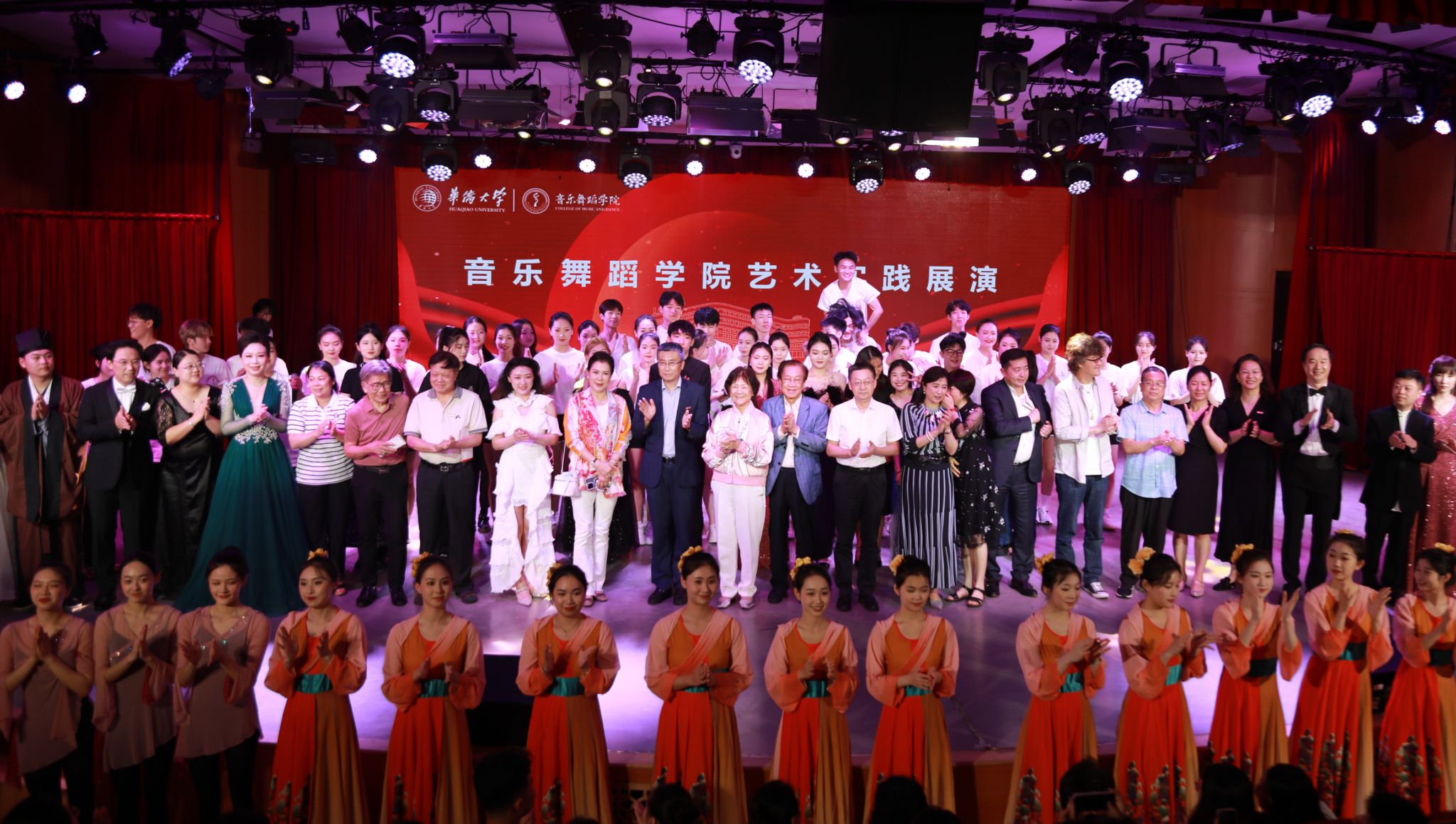 观看音舞学院艺术实践展演后与师生合影(王欣悦/摄)